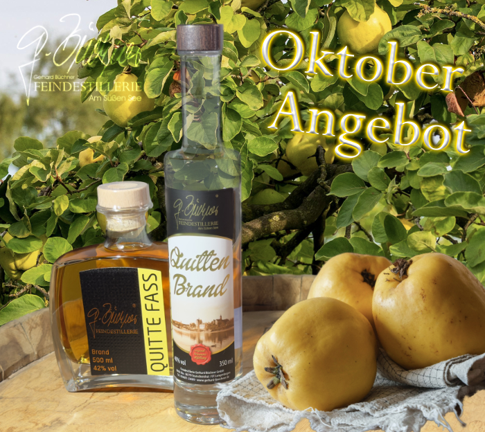 Im Oktober haben wir unseren Quittenbrand und Quittenbrand-Fass für Sie im Angebot!